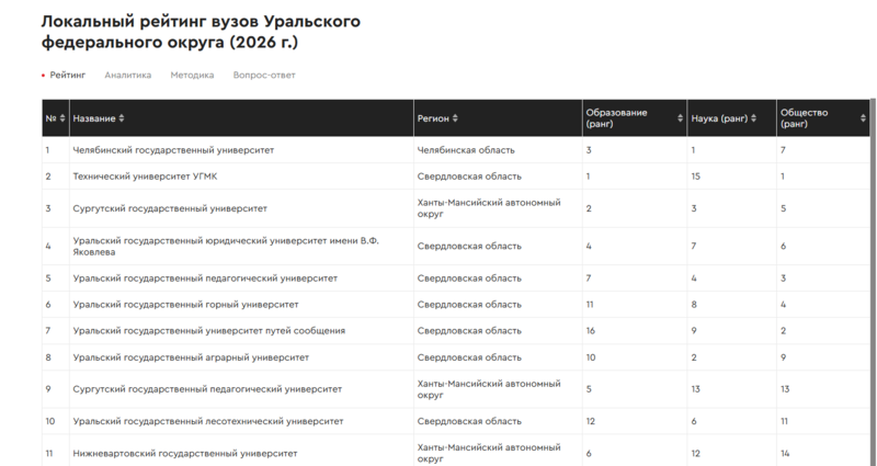 В рейтинге лучших учебных заведений УрФО оказались 17 вузов. Три из них находятся в ХМАО-Югре. Так, на третьей строчке расположился Сургутский госуниверситет - он уступил лишь Челябинскому госуниверситету и Техническому университету УГМК. В 2025 году СурГУ был на втором месте.