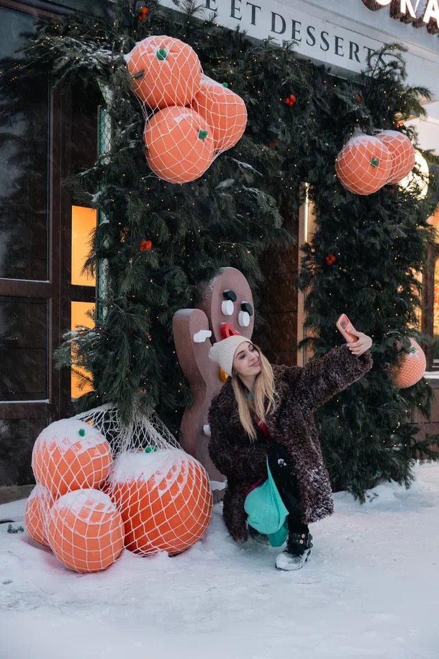 Зарядиться праздничным настроением вам поможет пряничный человечек и мандарины в авоськах. Так креативно выглядит вход кофейни-кондитерской на Ивана Захарова, 17.