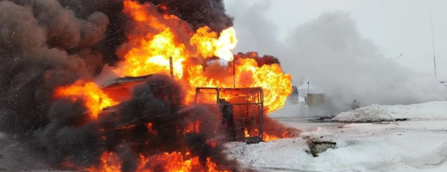 Возгорание бензовоза произошло возле АЗС, расположенной по улице Строителей. В настоящее время на месте работают спасатели.